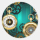 Pegatina Redonda Steampunk Jewelry Watch sobre un fondo verde