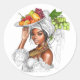 Pegatina Redonda Sticker. Beautiful girl with fruits
