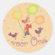 sticker met muis met bloemen en vogeltjes: voor Oma. Tekst kan aangepast worden