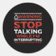 Pegatina Redonda Stop Talking While I'm Interrupting Someone In Wor