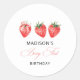 Pegatina Redonda Strawberry Bow 1st Birthday