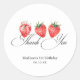 Pegatina Redonda Strawberry Bow 1st Birthday Thank You