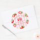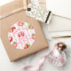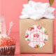 Pegatina Redonda Strawberry Coquette Bow Baby Shower Favor Gift