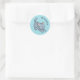 Pegatina Redonda Stretching Grey Tabby Cat Blue Custom Name