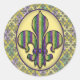 Pegatina Redonda Stripe Mardi Gras Fleur de lis