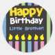 Pegatina Redonda Stripey de pequeño Brother del feliz cumpleaños