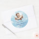 Pegatina Redonda Stylish Teddy Bear Pilot Airplane Blue Brown Baby