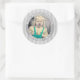 Pegatina Redonda Su foto Sencillo patrón de franjas Gris/Blanco