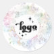 Pegatina Redonda su logotipo en el fondo simulado chunky purpurina
