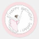 Pegatina Redonda Su Nombre Aquí Ballerina Rosa Feliz Cumpleaños