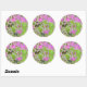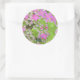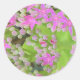 Pegatina Redonda Suculento sedum rosa caliente con hojas verdes flo