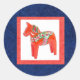 Pegatina Redonda Sueco Dala Horse Scandinavia Tradicional