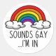 Pegatina Redonda SUENA GAY, ESTOY EN LA Camiseta