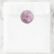 Pegatina Redonda Sueño de flores rosadas fractales, patrón de fanta