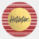 Pegatina Redonda Suéter de punto navideño HO HO HO con lámina dorad