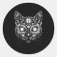 Pegatina Redonda Sugar Cat Skull Flower Artistic Design