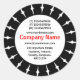 Una plantilla de pegatina con un bonito entorno de rayos solares en blanco y negro. Esta versión está diseñada con campos para un nombre de empresa y detalles de contacto. Aunque el texto será bastante pequeño en el pegatina de tamaño de 1,5", debería ser perfectamente legible.