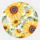 girasoles amarillos vibrantes y hojas y tallos verdes.