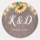 Pegatina Redonda Sunflowers Rustic Country String Luces Boda
