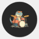 Pegatina Redonda Sungles Rockstar Dinosaur With Cool Drums Costume