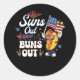 Pegatina Redonda Suns Out Buns Out Funny Hot Dog Patriotic USA 4th
