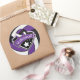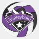 Pegatina Redonda Superestrella de voleibol morado, blanco y negro