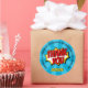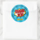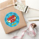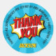 Pegatina Redonda Superhéroe Comic Style Boy Cumpleaños Azul Gracias