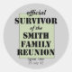 pegatinas personalizares con el nombre de su familia, la fecha y el lugar de su próxima reunión familiar. ¡Entreguen a todos los que están ahí! ¡Tal vez especialmente los organizadores!