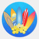 5 tablas de surf retro con hibisco amarillo, la flor del estado de Hawaii.