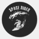 Diseño de Guay con un astronauta surfeando en el espacio y el dicho "Space Rider".