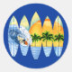 Pegatina Redonda Surfista Y Surf