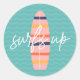 Pegatina Redonda Surfs Up Pink Surfboard y WalNday Party