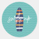 Pegatina Redonda Surfs Up Surfboard and waves Birday Party
