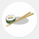 Una fresca pieza de sushi maki y un par de palillos atraen a los hambrientos fanáticos de la más querida exportación culinaria japonesa en este moderno diseño del artista y gourmet Eddie Farrell (kulturekrunch.com).