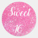 Pegatina Redonda SWEET 16 Purpurina rosa caliente