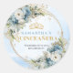Pegatina Redonda Sweet Dusty Blue Gold Greenery Quinceañera Party