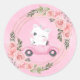 Pegatina Redonda Sweet Kitten Pink Vintage Car Baby Shower