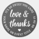 Añade un toque personalizado a los favores del partido y gracias notas con personalizados pegatinas/sellos para sobres redondos de "amor y agradecimiento". Toda la redacción de esta plantilla es sencilla para el personalizar en cualquier ocasión, como boda, ducha de novia, graduación, fiesta de cumpleaños, aniversario o jubilación. El diseño de pizarra en blanco y negro presenta caligrafía de escritura moderna en el centro y el nombre y fecha de un elegante evento de tipografía en un círculo. Como opción, cambie el texto curvo a un nombre y dirección para hacer etiquetas de dirección de retorno redondeadas. Estas elegantes etiquetas le dan un toque personalizado único a una celebración especial del día.