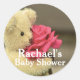 Pegatina Redonda Sweet Teddy Bear Con Baby Shower Rosa