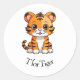 Adorable pegatina con un tigre bebé personalizado lindo y las palabras "T para el tigre". Excelente herramienta de aprendizaje de letras para el aprendizaje temprano. Diversión para coleccionistas de pegatinas y entusiastas de los animales. Encuentra tu carta favorita en nuestra colección de "Pegatinas alfabetos" que incluye lindos animales bebés de todo el mundo.