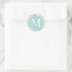 Pegatina Redonda Tan Chevron Turquoise Monograma