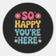 Pegatina Redonda Tan feliz estás aquí Groovy Retro Sitividad Mujere