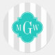Pegatina Redonda Tapa blanca grisácea Verde azulada Quatrefoil 3 Mo