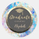 Pegatina Redonda Tapa de graduación dorada con purpurina, confeti,