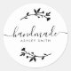Cree Su Propio Pegatina Empresarial Hecha A Mano. Diseño minimalista moderno con caligrafía de escritura elegante y acentos florales rústicos. Personalizar todo el texto en este sencillo diseño para crear un pegatina personalizado al empaquetar y enviar sus productos.