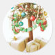 Pegatina Redonda Tarjetas de árbol de navidad y Pegatinas antiguos