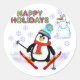 Pegatina Redonda Tarjetas de esquí de pingüino