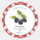 Pegatina Redonda Tarro de Gingham de Mermelada de Zarzamora Acuarel