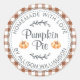 Pegatina Redonda Tarta de Calabaza Casera Rústica TerraCotta Check
