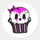 Pegatina Redonda tarta de cráneo morado y rosa